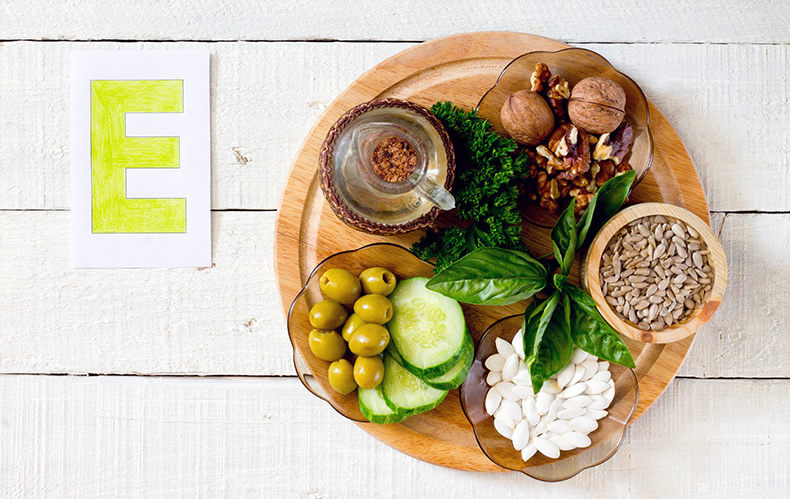 维生素E广泛分存于植物组织中,特别良好的来源为麦胚油,玉米油、花生油及芝麻油等。莴苣叶及柑橘皮含a-生育酚也很多,几乎所有绿色植物都含有此种维生素。此外,猪油、猪肝、牛肉以及杏仁、土豆也含有维生素E。只要孕妇在饮食上做到多样化,维生素E就不会缺乏。