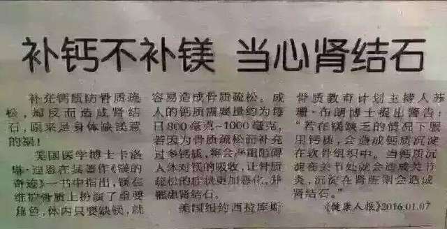 补充钙质防骨质疏松,缺造成肾结石,原来是身体缺镁惹的祸